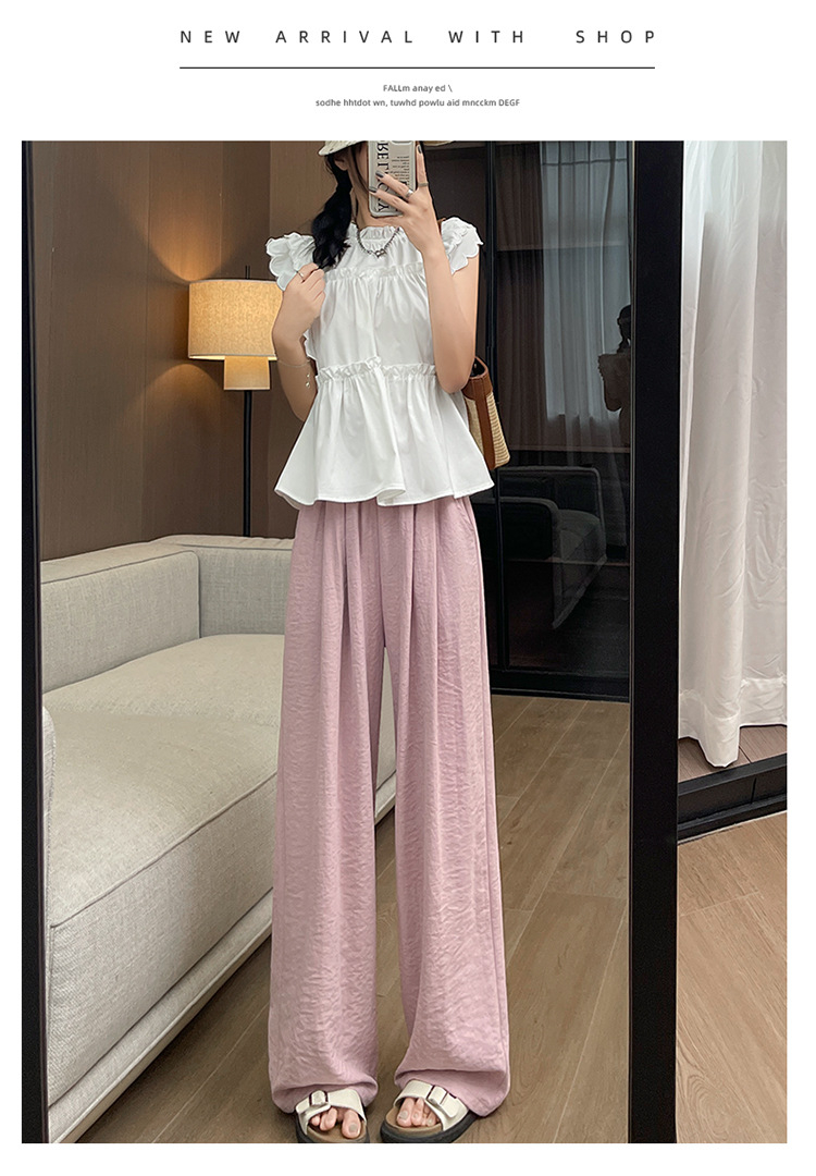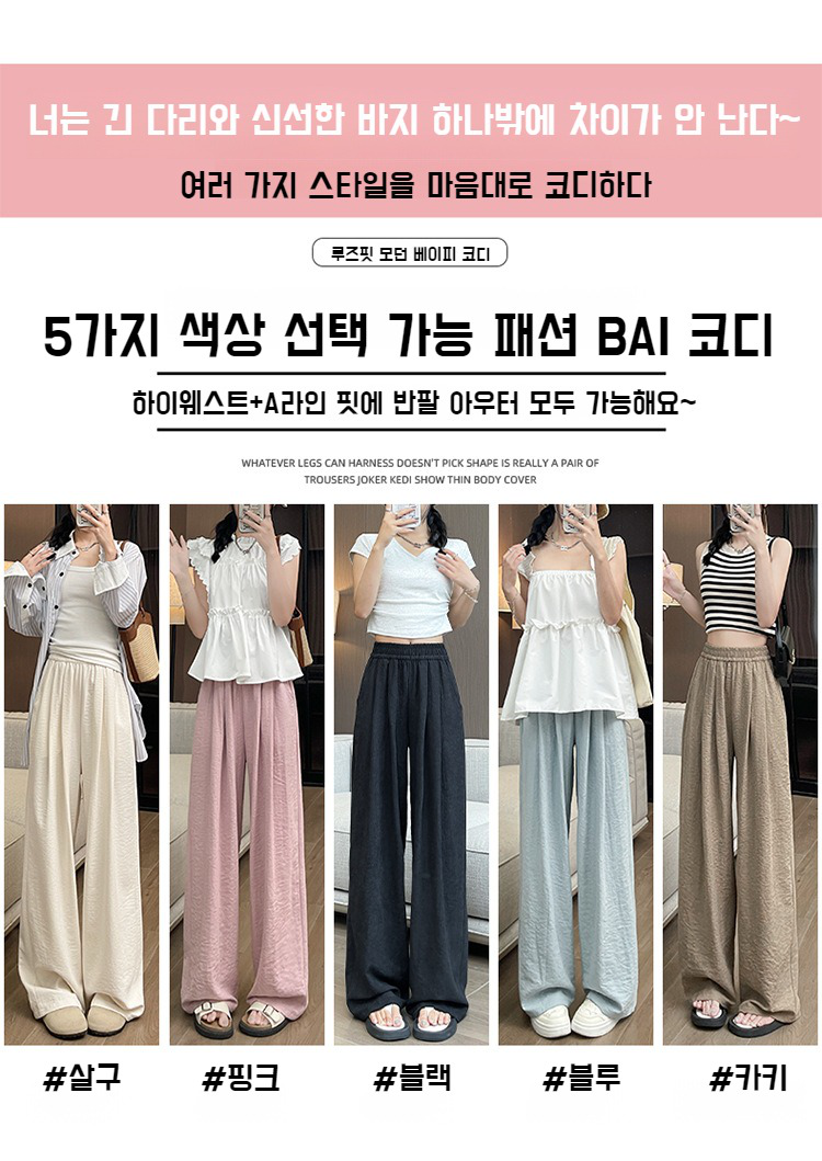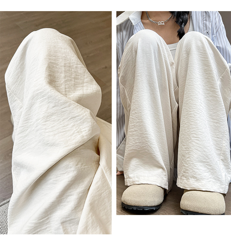 여성 나른한 와이드 팬츠 화이트 와이드 잔키 봄가을 소프트 캐주얼 팬츠