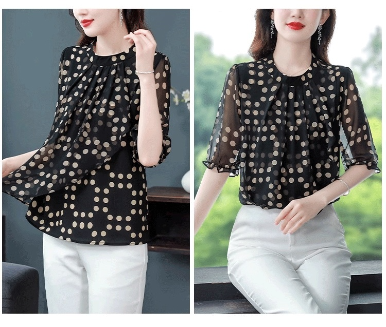 여름 여성 캐주얼 반팔 블라우스 블라우스 기질 날씬해 보이는 반팔 블라우스