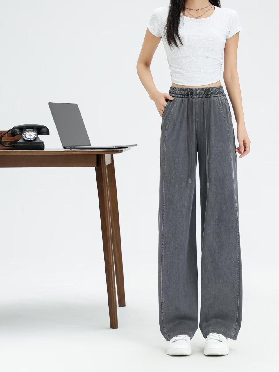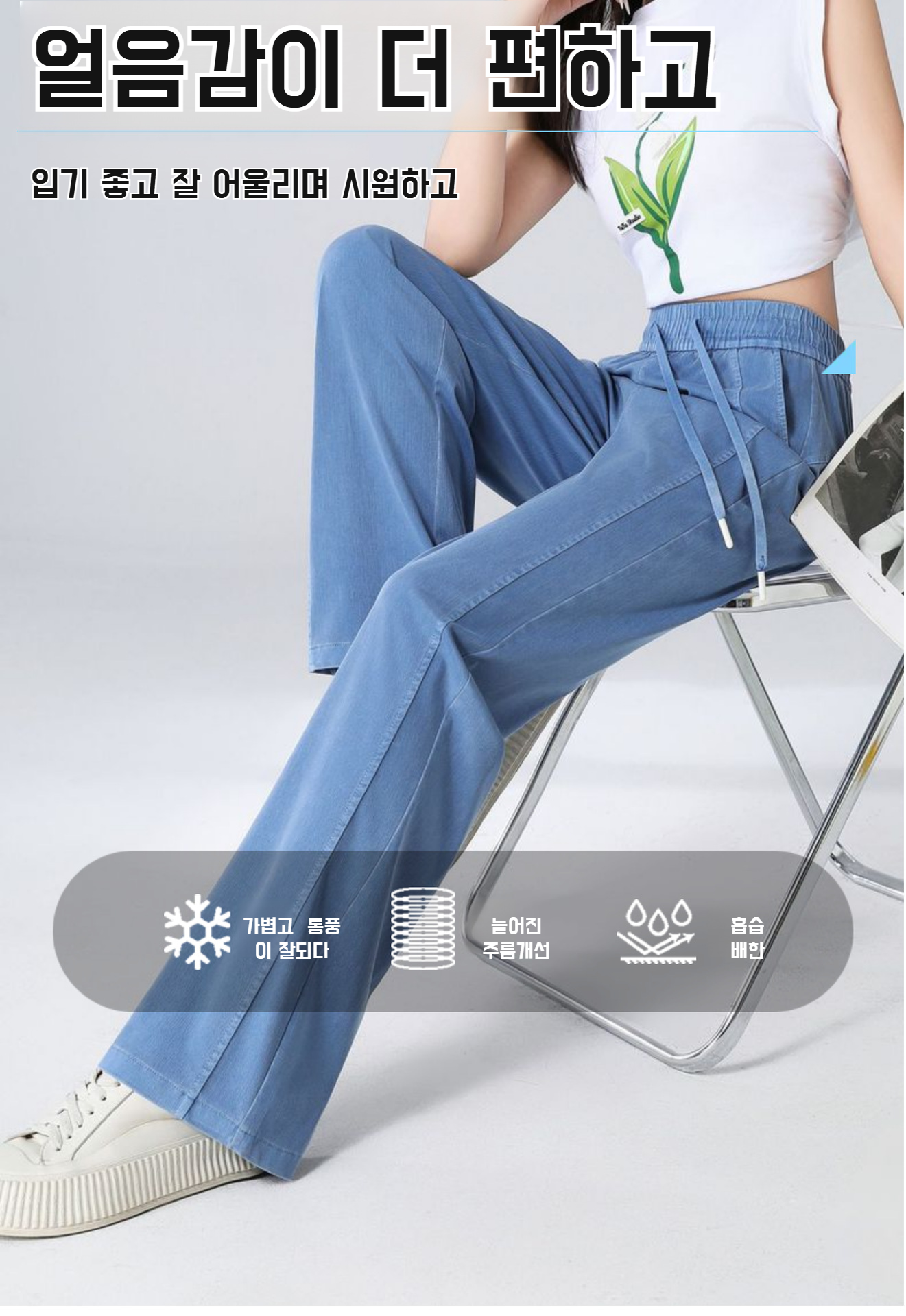 여성 봄 텐셀 데님 와이드 팬츠 드롭감 와이드 하이웨스트 와이드 팬츠 얇은 아이스 와이드 팬츠 라이셀 민트 와이드 팬츠